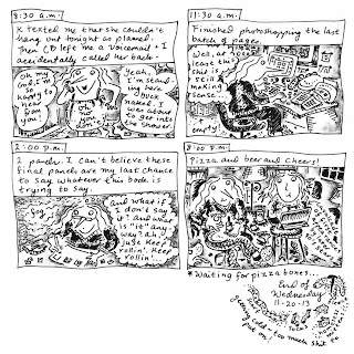 Actually, (nineteen months in), let's be honest, this shit is taking me about an hour. But I can't stop--I'm addicted! Recently I self-published a 48-page excerpt called RUSHES: A COMIX DIARY, which debuted at SPX 2013. It is available at Bergen Street Comics in Brooklyn, JHU Comics in Manhattan, Big Planet Comics in Washington, DC, Copacetic Comics in Pittsburgh, and Kilgore Books and Comics in Denver. You can also order it from me directly at jennifer@jenniferhayden.com.